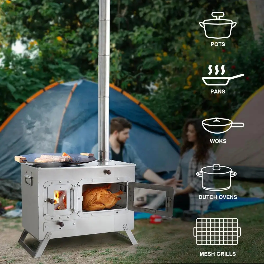 Crafted from durable stainless steel, it’s built to withstand high temperatures, rough terrain, and unpredictable weather. The integrated oven chamber lets you cook full meals off-grid—perfect for campers who crave more than just instant noodles. With its easy setup and foldable structure, this stove packs down for effortless transport and pops up in minutes, no tools required.