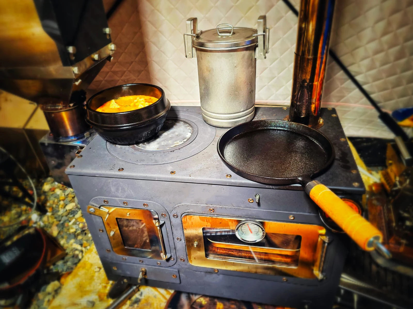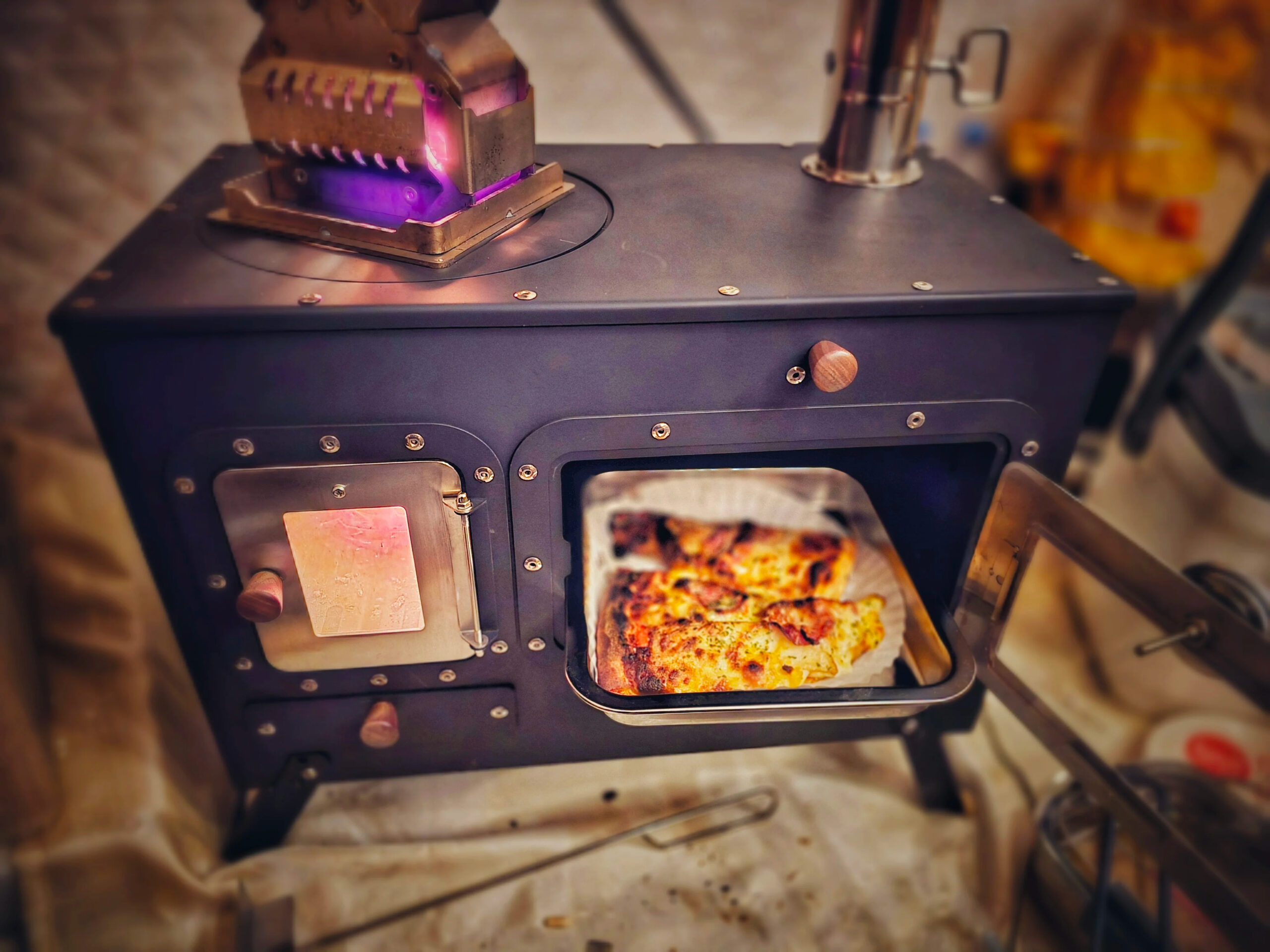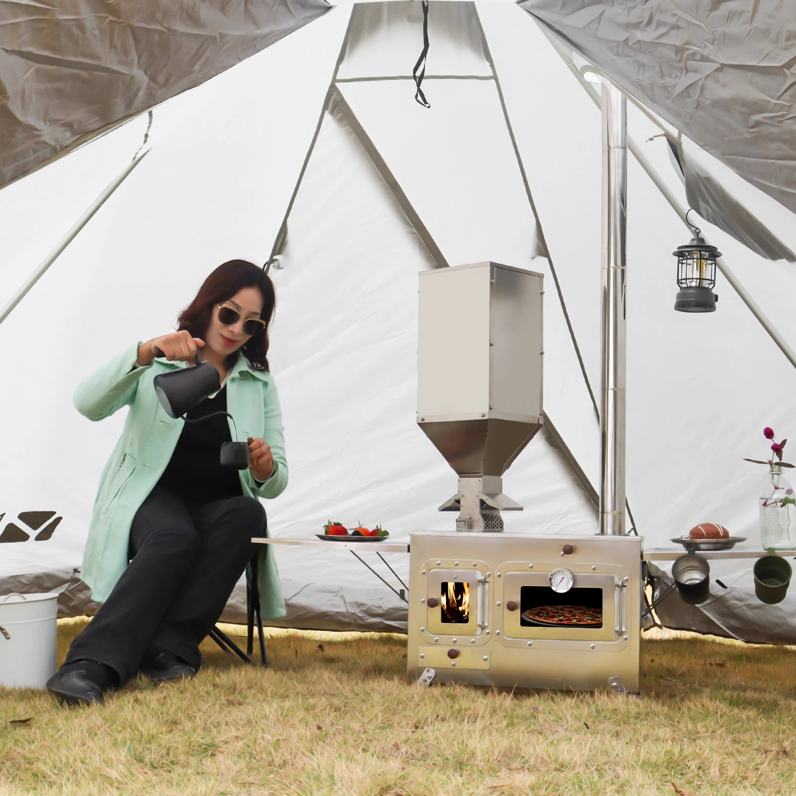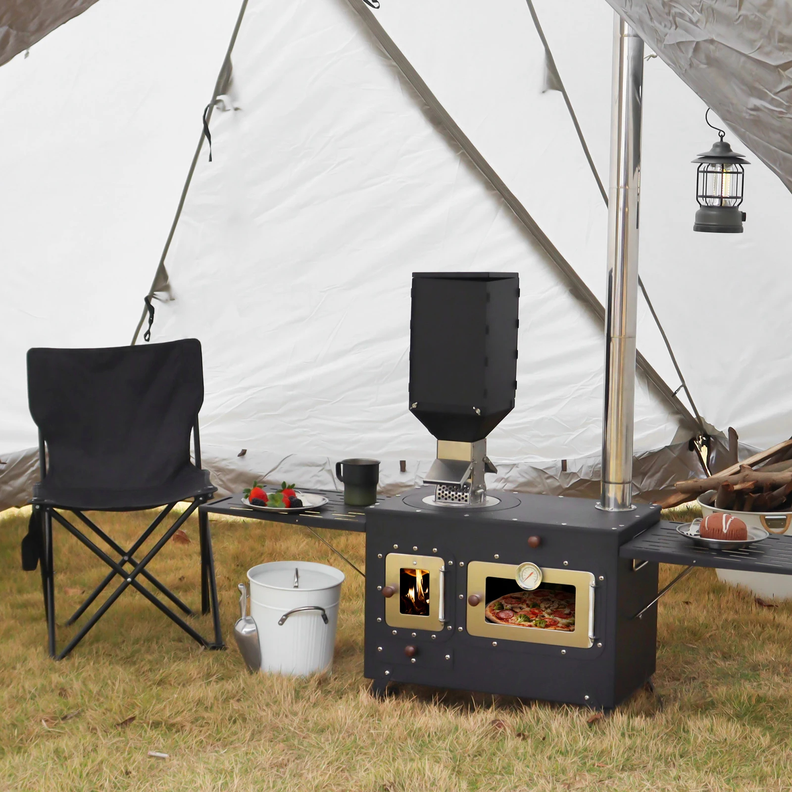 Designed to perform in unpredictable conditions, the enclosed firebox and oven maintain consistent heat even in light rain or gusty winds—keeping your meals hot and your tent warm.