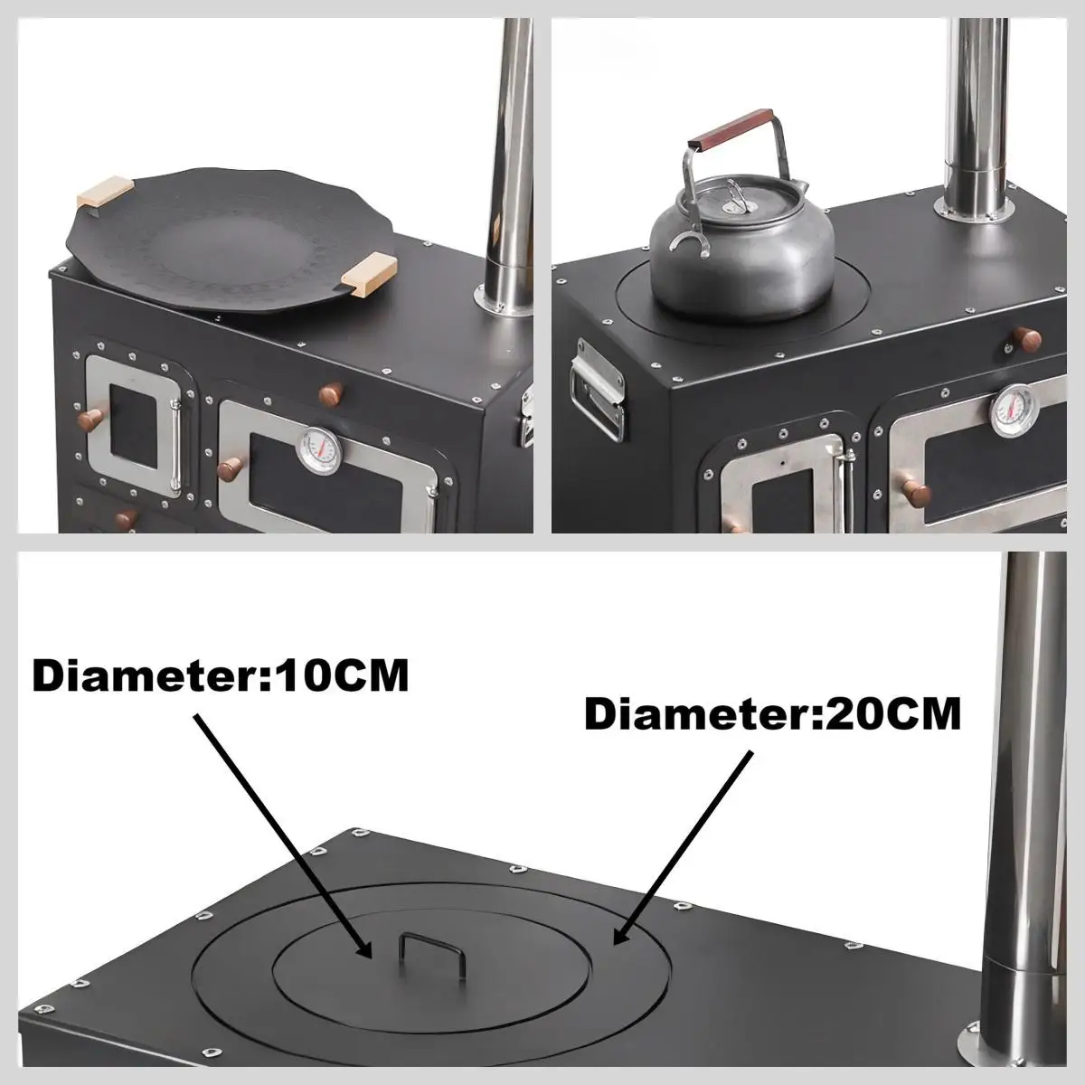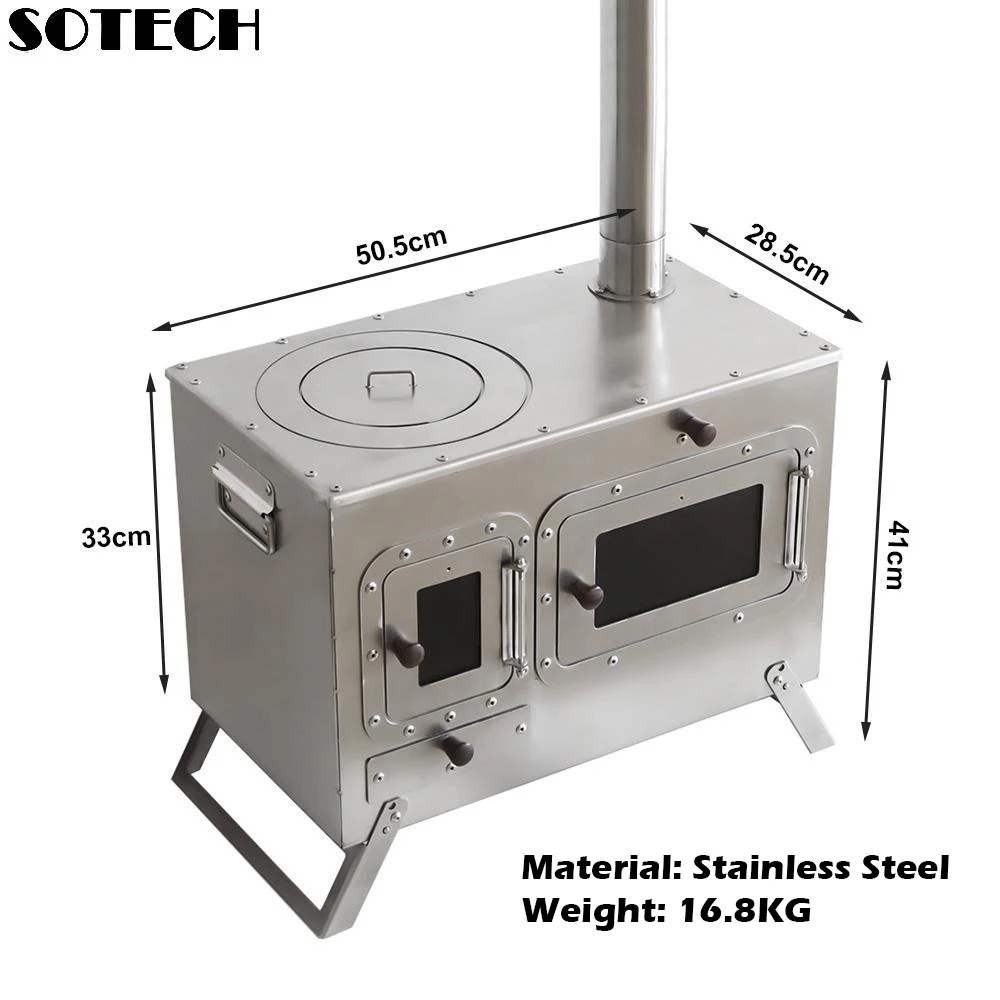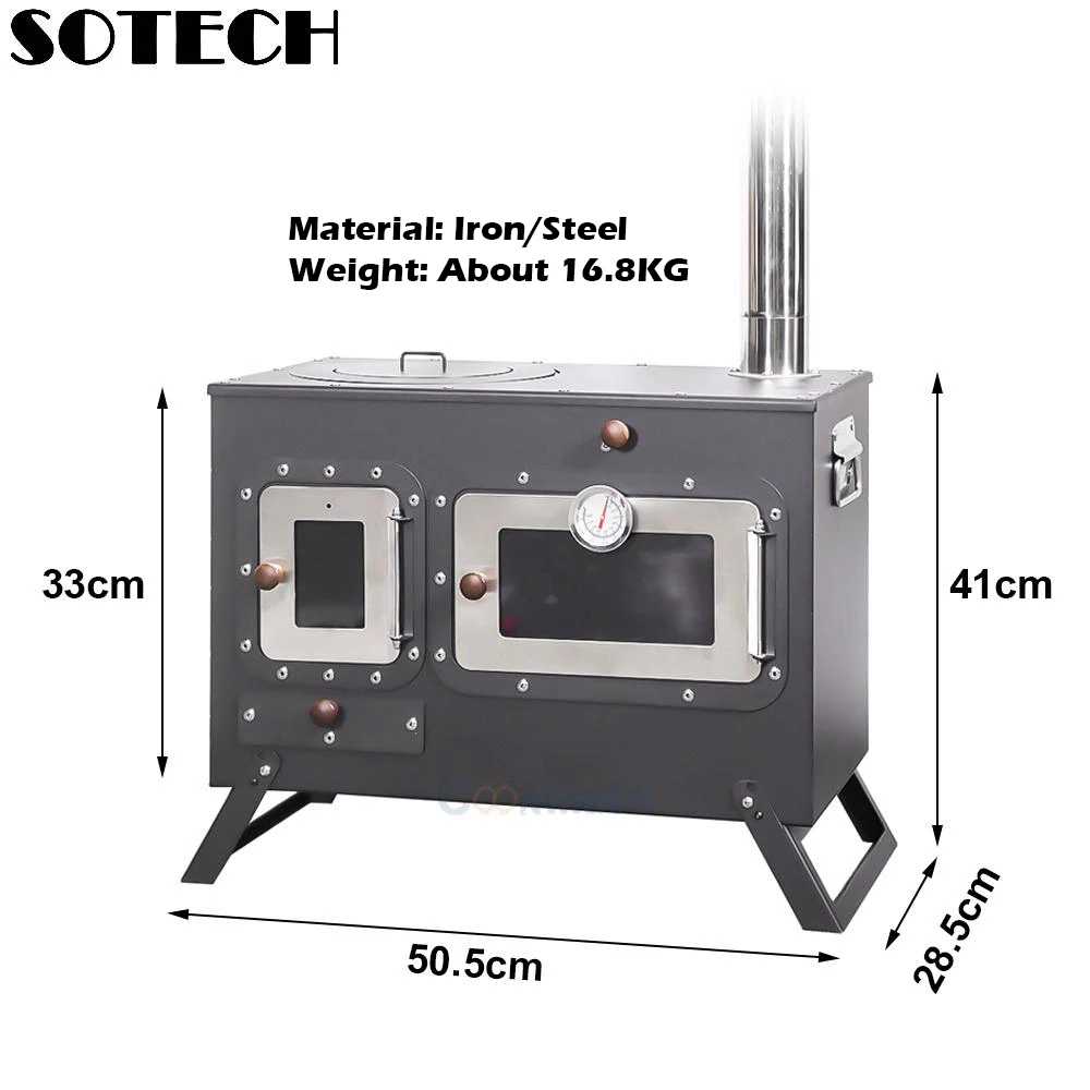 While exact dimensions aren’t listed, the stove is designed to balance cooking space with portability. The integrated oven chamber adds functionality without bulk—ideal for small campsites, tent vestibules, or picnic setups.