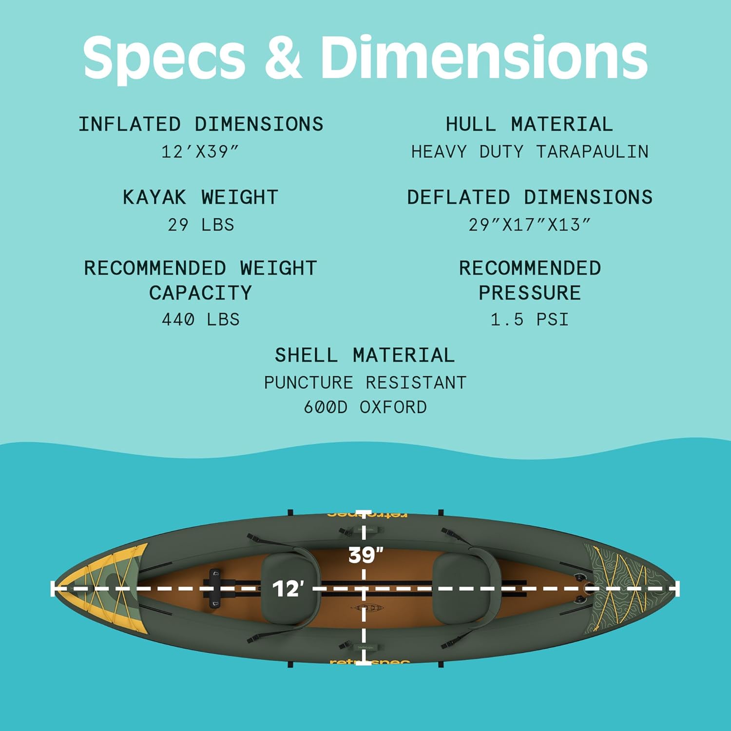 - PORTABLE AND COMPACT – Compact, lightweight, and easily portable, enabling you to enjoy the excitement of kayaking without the hassle of transporting it. Lightweight, weighing just 29 lbs, our portable kayak is easy to carry anywhere. It deflates to fit into an easy-to-carry bag for convenience. Dimensions – Inflated: 12’6 x 39” and Deflated: 29’’ x 17’’ x 13’’.