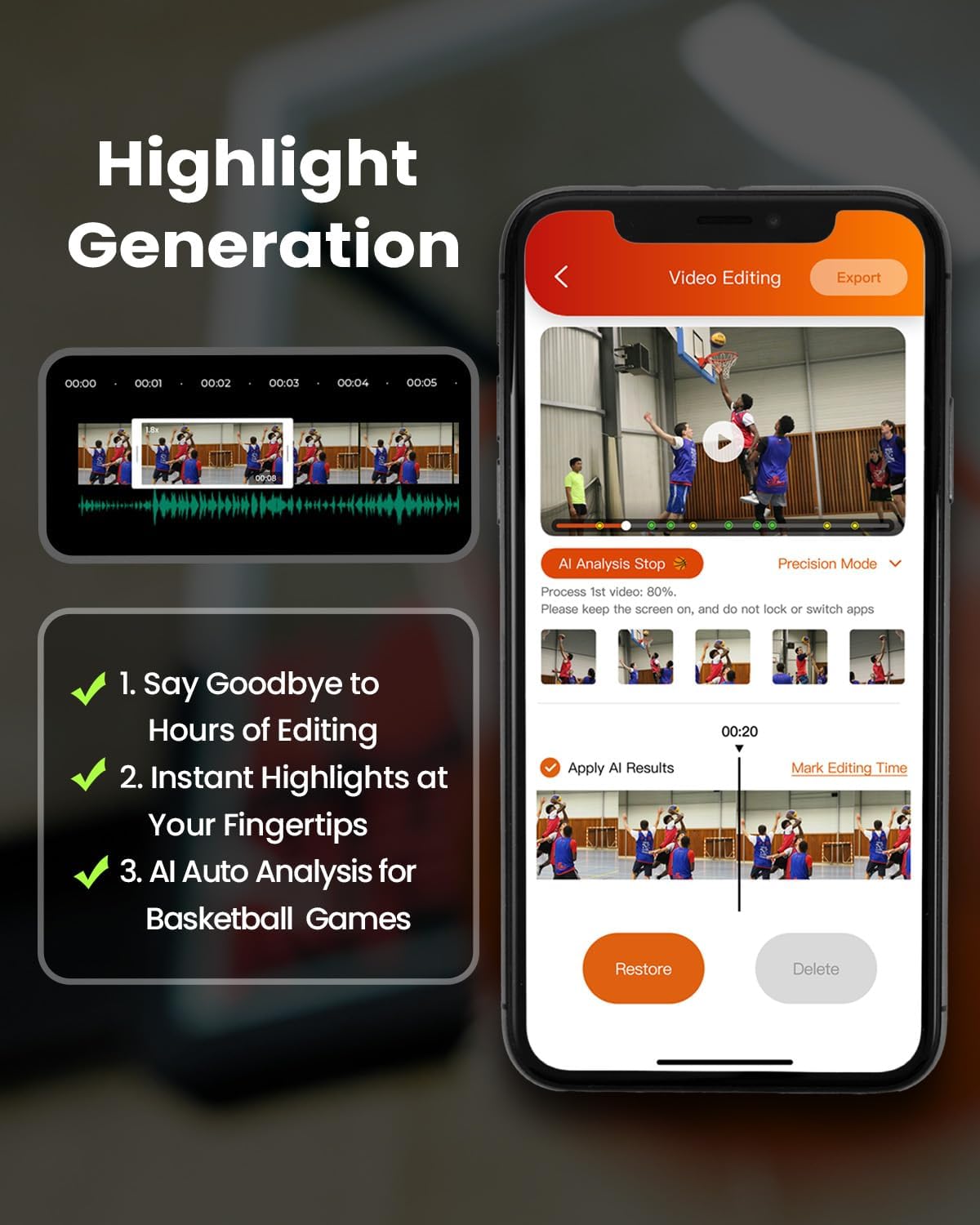 Exclusive XbotGo App – No Subscription Fee: Easily capture key moments using the Bluetooth remote or Apple Watch, and create highlight reels with a single tap. Stay on top of the action with the live scoreboard feature, keeping track of scores in real time. Enjoy 20GB of free cloud storage to securely save your footage, free up your phone’s memory, and access your videos anytime.🚩Note: All without any extra fees.